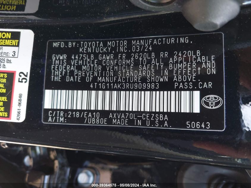 4t1g11ak3ru909983