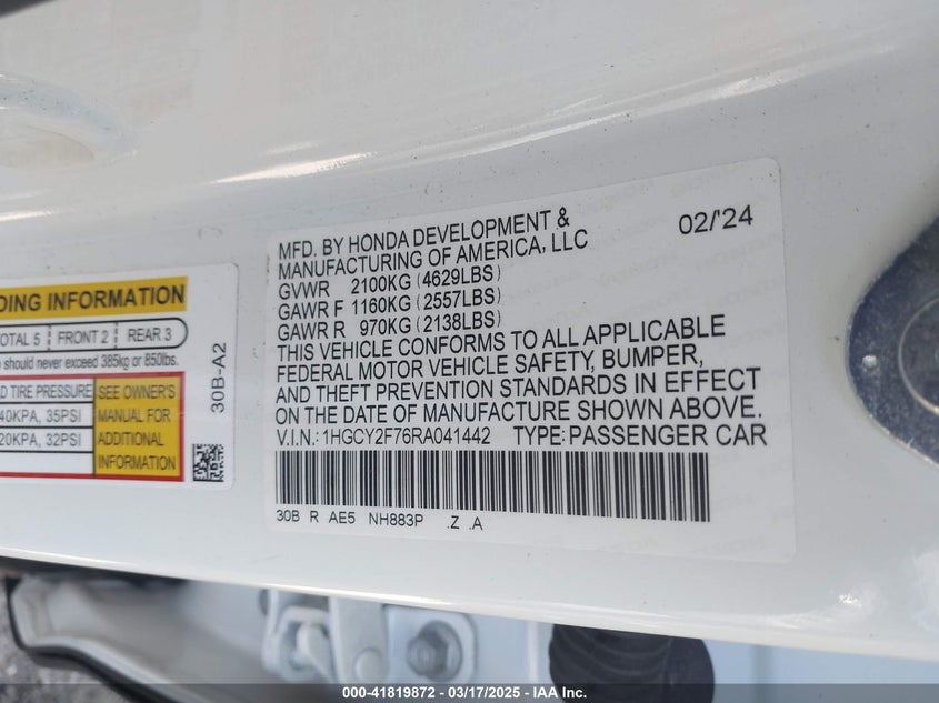 1hgcy2f76ra041442