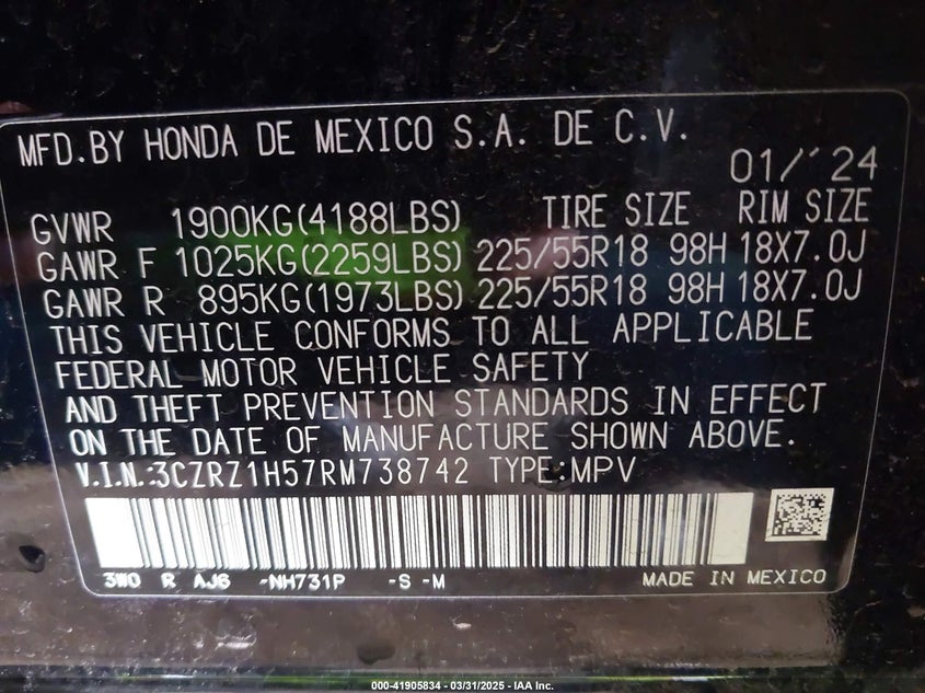 Honda hr-v 2wd sport/2wd sport w/o bsi 2024