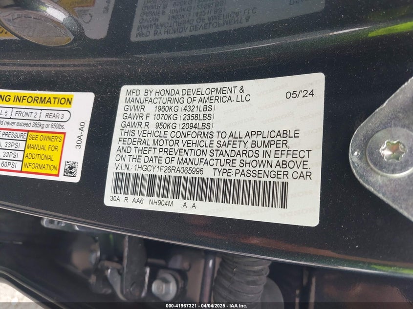 1HGCY1F31RA004578