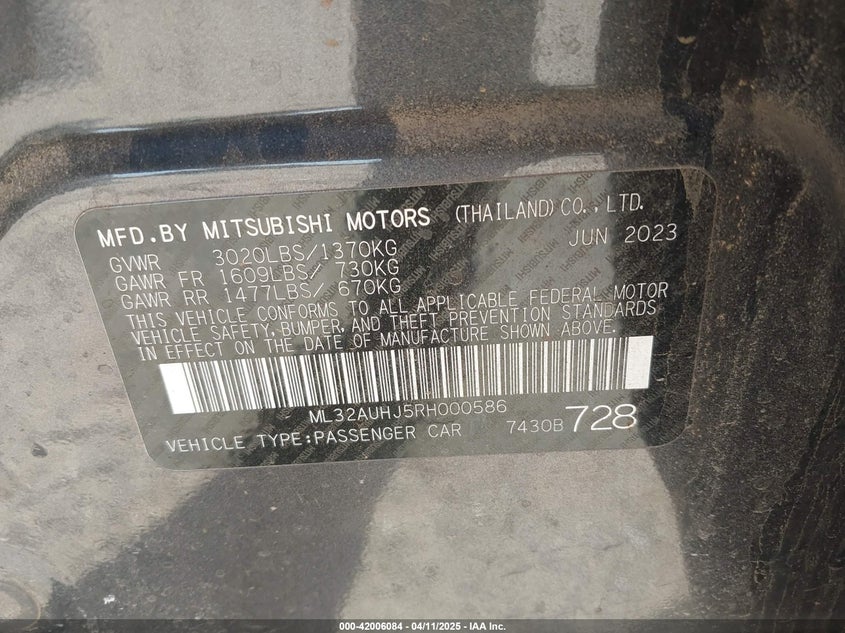 Mitsubishi Mirage Es/le 2024