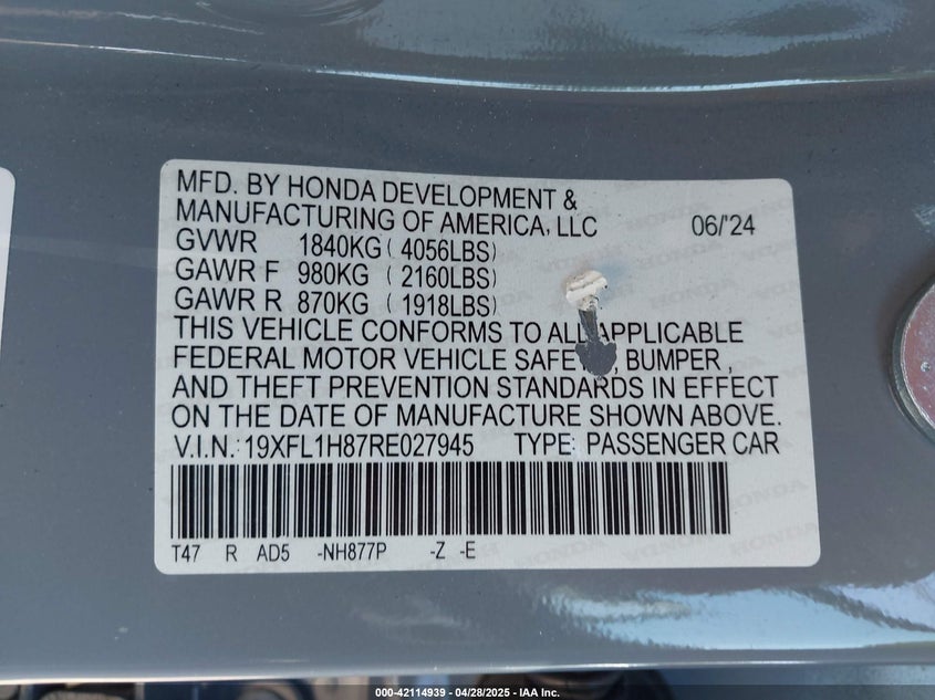 19XFL2H84RE041744