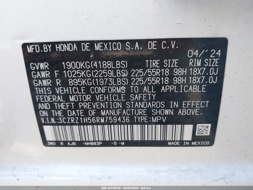 Honda hr-v 2wd sport/2wd sport w/o bsi 2024