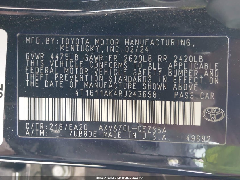 4t1g11ak4ru243698
