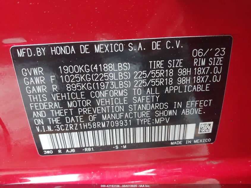 Honda hr-v 2wd sport/2wd sport w/o bsi 2024