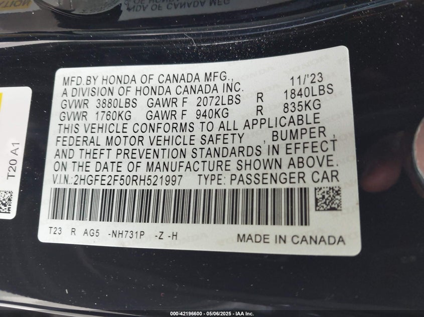 1HGCY1F36RA072603
