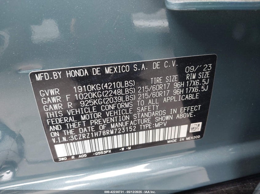 Honda hr-v 2wd ex-l/2wd ex-l w/o bsi 2024