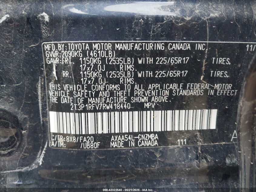 2T3A1RFV2RW493665