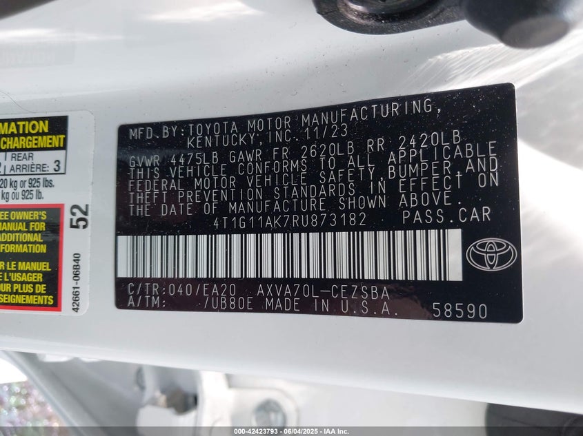 4t1g11ak7ru873182
