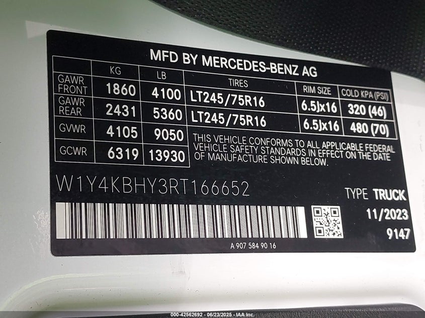 Mercedes-benz sprinter 2500 standard roof 4-cyl diesel 2024