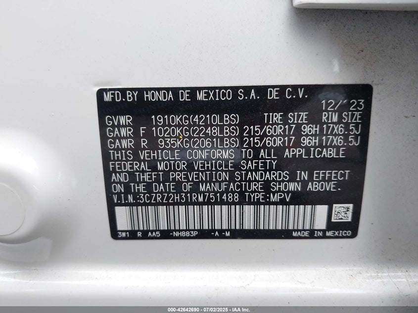 Honda Hr-v 2wd Lx 2024