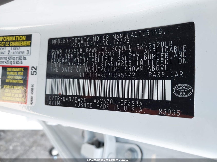 4t1g11ak8ru885972
