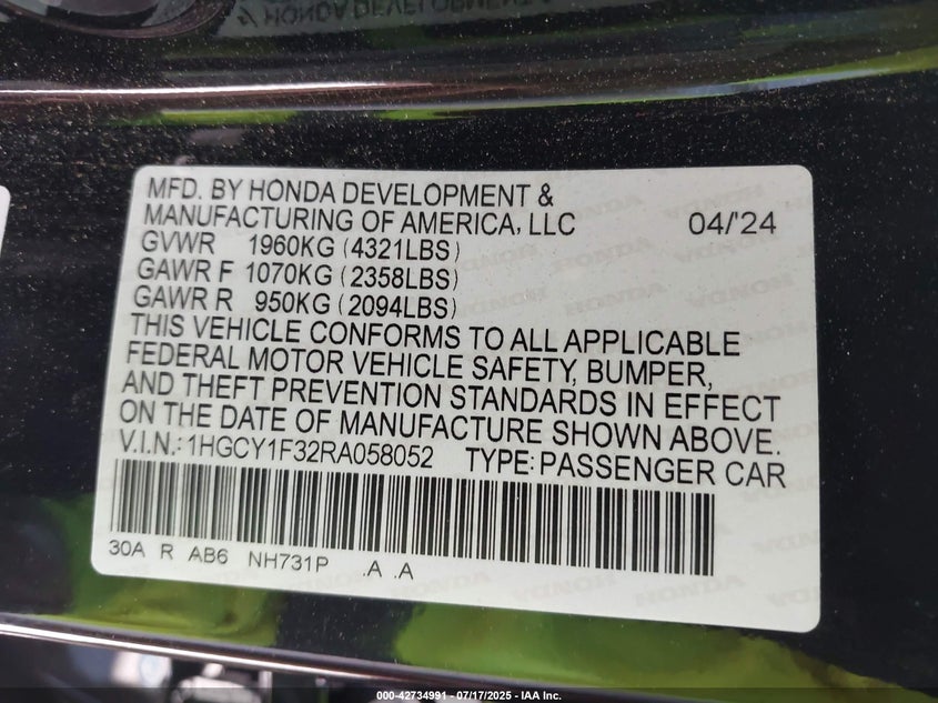 1HGCY1F31RA004578