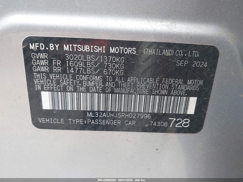 Mitsubishi Mirage Es/le 2024